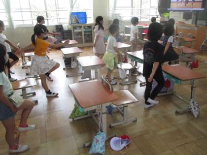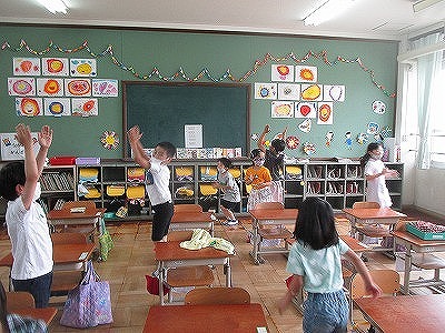 今日は音楽の学習で,「さんぽ」の歌の拍打ちをしました。
