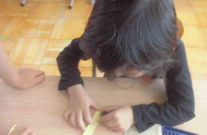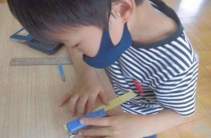 2年生は,長さの学習を始めています。ながさをくらべるには,どうしたらいいか考えました。「手でくらべる?」「数図ブロックでくらべる?」と考えがでたので,やってみました。もっとべんりなものはないかな?ときくと,「ものさし!」長さをはかるものとしてよく分かっていました。
