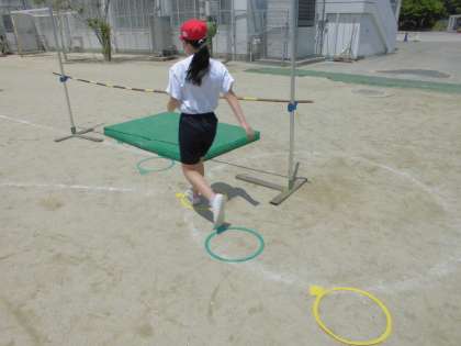 高く飛び上がるために「足の上げ方」や「助走のステップ」を意識しました。