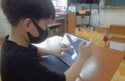 3・4年生は,スクラッチというアプリでプログラミングに挑戦しています。キャラクターを自分が考えるように動かすためには,直進や回転を何回させるか,どのような音を出すかなど考えなければなりません。