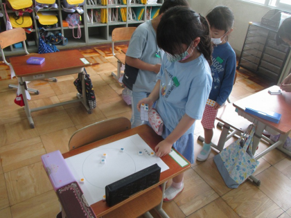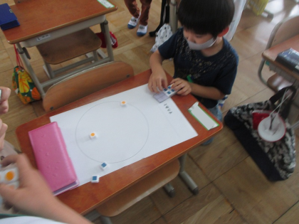 子どもたちは,「5と5になる,同じ数だね」「9と1になった!やったー」など言い合いながら,楽しく活動しました。