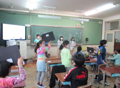 雨だったため,教室で遊びました。班ごとに分かれ,お題に答えました。他の班とかぶらなかったら10点!5班中,4班がかぶってしまうこともありました。