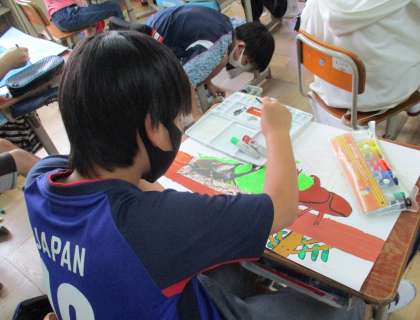 前の時間の続きをしました。色を重ねたり筆の使い方を変えたりしながら,自分の想像する世界を描くことができました。