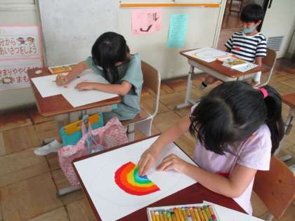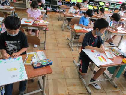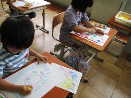 どんなたまごがあったら嬉しいかな?と考えて,色や模様,形を考えて描いていきました。絶対に無いような楽しいたまごがいっぱい出来上がりました。