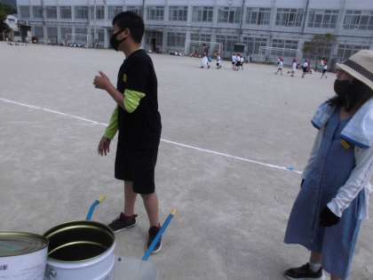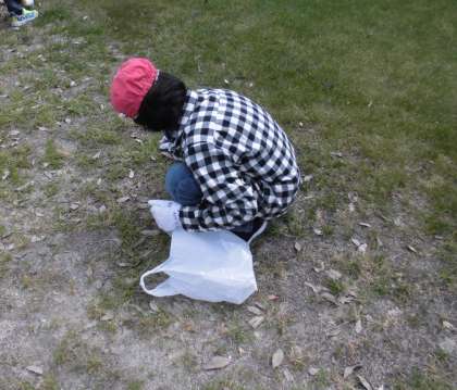 1時間目に草ひきをしました。1人1枚ビニル袋をいっぱいにする事を目標にして頑張りました。よく頑張ってくれました。