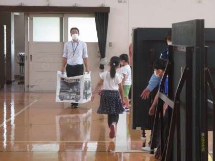 次に,体育館を実際の道に見立てて,目的地に向かって歩きました。
