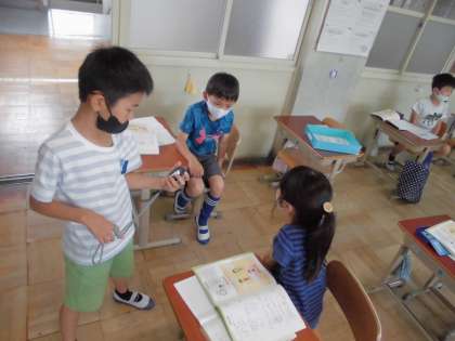 1分より短い時間「秒」をはかるのに便利なストップウォッチを使って,えとをすべて言うのにどれくらいかかるのかをはかったり,1分間で何ができるのかを調べたりしました。