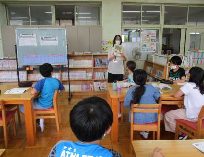 学校司書の大薮先生から,図書館の使い方についてお話をしていただきました。年鑑の使い方を教えていただいたり,先生のおすすめの本をうかがったりしました!