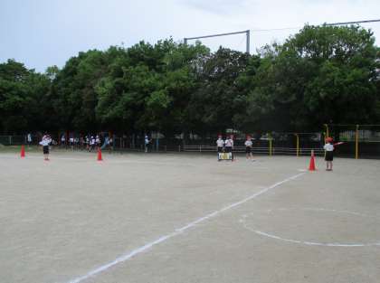 チームを変えて試合を行いました。ボールをしっかりとらえて打つことができました!