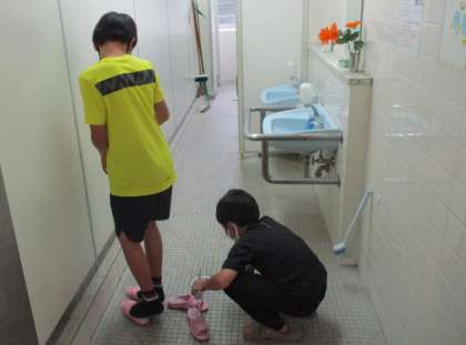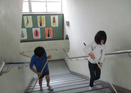 責任をもって自分の担当の場所をきれいにしようと,協力して活動してくれています。金曜日は,前日の分まで一生懸命取り組んでいます。
