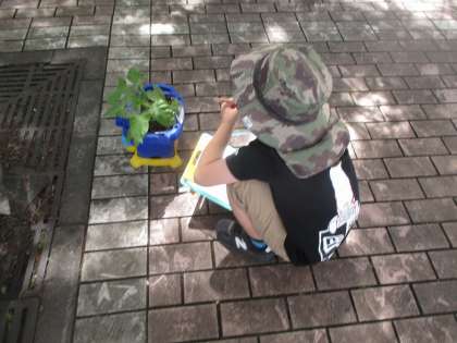 今日は,育ってきたあさがおの観察をしました。