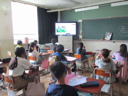 6月の朝会がZOOMでありました。校長先生から,今の時期ならではの梅雨やあじさいの話をしていただきました。顔を上げてしっかりと聞けていました。