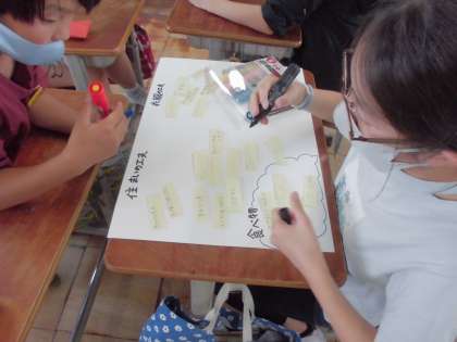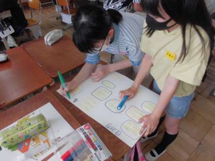 個人で考えたことを付箋に書き,画用紙に項目ごとにまとめました。