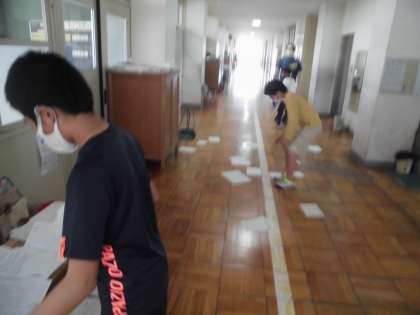 風に吹かれて,プリントが廊下に散らばっていました。それを見た6年生。自分から進んで拾って元の位置に戻していました。気持ちのいい行動でした。