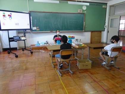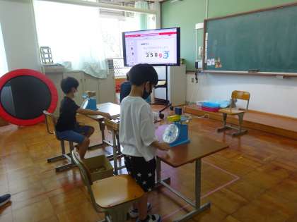 3時間目,3・4年生は,算数「おもさくらべ」を先生方に見ていただきました。今日は,250gなどの重さを作る学習をしたり,どっちが重いかを比べたりしました。重さに対する興味も高まってきています。
