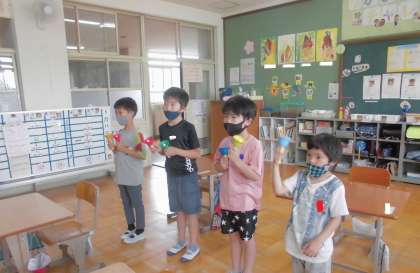 音楽の時間にハンドベルの演奏をしています。今月は,「かたつむり」の曲を練習しています。4人の息があって,とてもきれいです。演奏前や演奏後の態度もきちんとしていて感心しています。