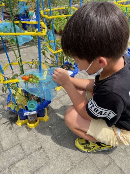 野菜が大きくなり,収穫した子から持ち帰っています♪