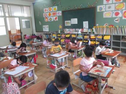 子どもたちは今まで習ったことを生かそうと一生懸命にテストに向かっています。