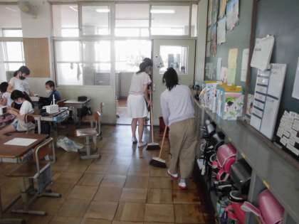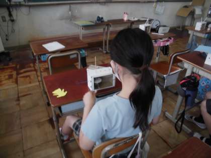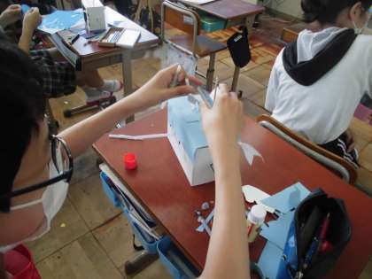 くるくるクランクを制作しています。クランクの動きに合わせてできるものを考えていました。サッカーをしている人や,イルカショーなどを作っていました。終わった後には,掃除をして教室をきれいにしてくれました。