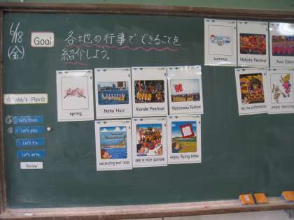 海外の方へ日本の行事を紹介する表現を学んでいます。日本の行事の言い方やその行事でできることをゲーム形式やゲスト役,ガイド役に分かれて伝え合うことで学習を深めています。楽しく意欲的に頑張っていました。