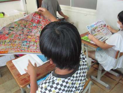チラシを見ながら,食料品がどこで生産されているのかについて考えました。果物は外国産のものが多いという気付きや,地域ごとに育てやすいものが違うのではないか?という予想など,活発に話し合うことができました!