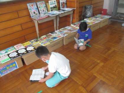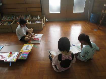 たくさんの本の中から,それぞれが気に入った本を選んでいました。