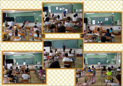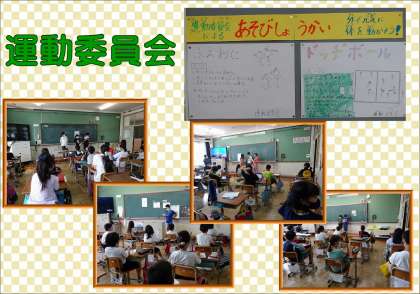 6月22日。運動委員会は朝の会の時間に各クラスに行って,遊びの紹介をしました。そして,里のホールにも遊びを貼りだしました。これからもいろいろな外遊びを紹介していくそうです。