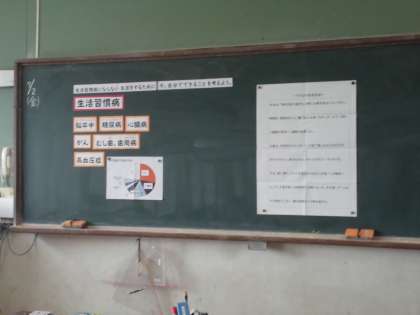食の指導では,生活習慣病にならないためには,どのような生活をするといいのかについて考えました。考えたことをもとに,自分自身の生活を振り返り,どのようにしていけばいいのかについて考えました。自分自身の生活を見直すいい機会になったのではないでしょうか。