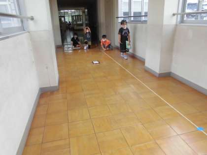 ゴムをのばす長さを考えたり,どのように車が走った距離を調べたりするのか,という実験方法も考えました。