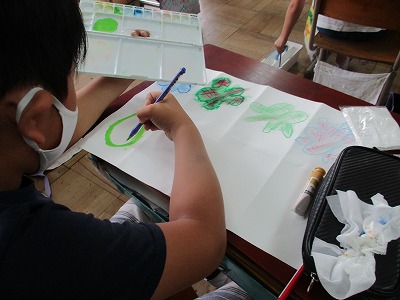 図工の学習で「まぼろしの花」をしている4年生。今日は,クレパスや絵の具などを使って花を描きました。色を薄くしたり,濃くすることで花の雰囲気が大きく変わります。子ども達は,いろいろ組み合わせて丁寧に描くことができました。