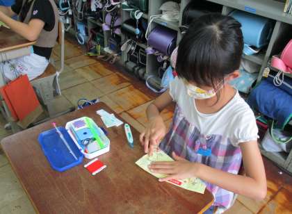 なみぬいの練習をしました。針の使い方に気を付けて,ゆっくり丁寧に縫うことができました。