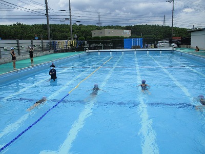体育科の学習で水泳をしている4年生。今日は,水なれの練習をした後に25メートル泳ぐ練習をしました。子ども達は,自分の泳力に合わせてビート板などを使ってしっかりと泳ぐことができました。