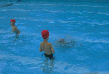 今日は2年生の水あそびでした。バブリングやボビング,ふしうき,またくぐりなど新しい水遊びもバディの友だちと一緒に楽しんでいました。