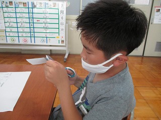 明日は7月7日。七夕です。3くみでは七夕かざりを作りました。まずは,折り紙で「あみかざり」と「かいかざり」を作りました。ハサミで線上を丁寧に切って広げるとすてきなかざりのできあがり。次に,短冊にねがいごとを書きました。どんな願いごとにしようかなといろいろ考えて書いていました。子どもたちの心の中には,夢や願いごとがたくさんつまっているように感じました。