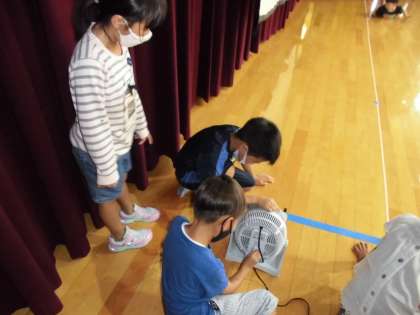理科の学習で,ゴムの力につづき,風の力についても実験をして調べました。