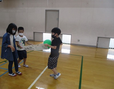 しんぶんしで風船を運ぶリレーや玉入れ,スプーンで卓球の球を運ぶリレー,先生とじゃんけんゲームなどグループで協力してゲームをクリアしていきました。