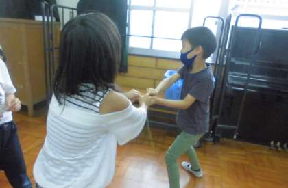 おおばこ・すずめのてっぽうでの草相撲,けん玉・お手玉,あやとり,輪ゴムてっぽう,こまのコーナーを順番に回って遊びました。