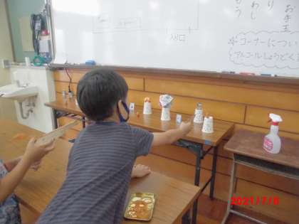 最後に,地域の方の肩をたたきました。ペン立てのプレゼントをもらってうれしそうでした。