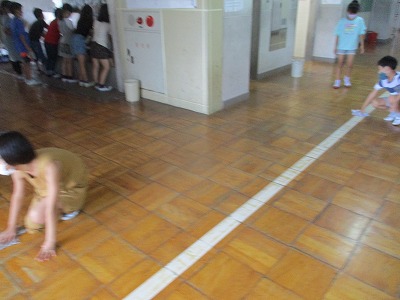 図工の学習後の様子です。廊下に少しでも汚れが出たらみんなで雑巾で掃除します。先生が指示するでもなく,自ら行動できる4年生はとても素敵です。この姿を続けていきましょう!