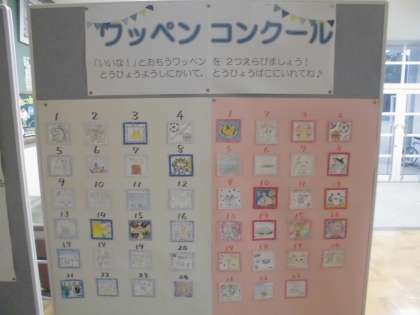 6年生が,たてわりグループのために作ったワッペンを里のホールに掲示し,素敵な作品に投票をしました!