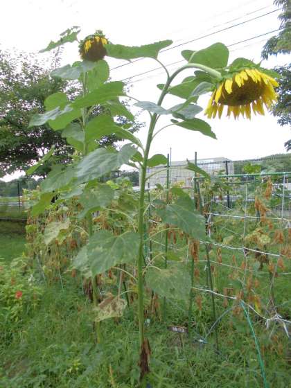 畑のヒマワリとホウセンカの姿が少しずつ変わってきました。