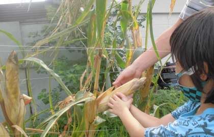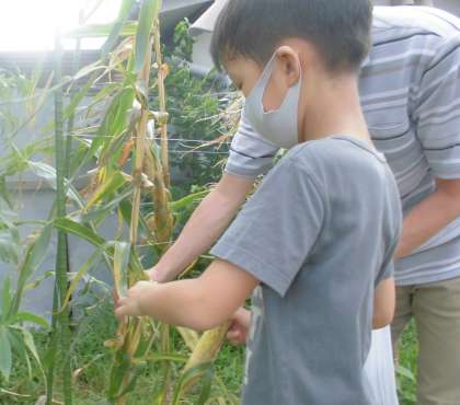 「とうもろこしはどうなったかな?」と野菜のことを気にかけてくれていたので,畑に行きました。