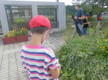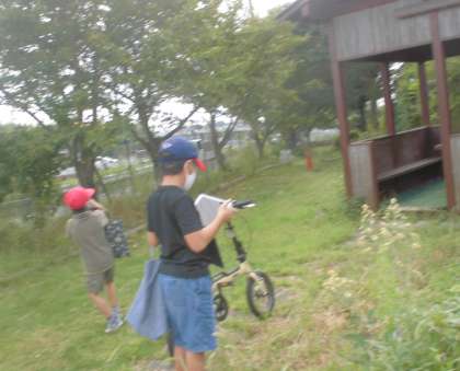 お話の絵を描こうと「みどりのほし」を見つけに行きました。