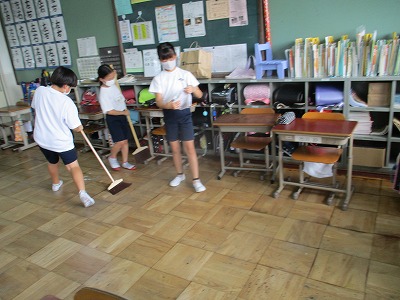 掃除時間の様子です。1学期から引き続き掃除を丁寧に頑張っています。友達と協力してこれからも上里小学校をピカピカにしていきましょう!