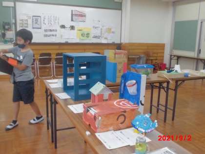 夏休みの作品を見に行きました。すてきな作品がたくさんありました。
