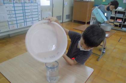 結果は,1L〜1L500mLの間でした。みんな1Lにちかい量の水を入れてきていたのでびっくりしました。