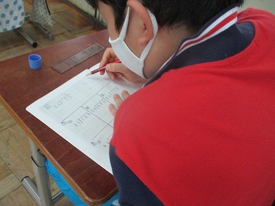 今日は3けたわる2けたの筆算にチャレンジしました。子どもたちは昨日学習した筆算のしかたを参考に答えを導き出しました。答えを出すだけでなく,たしかめ算をすることで自信をもって問題に取り組むことができました。