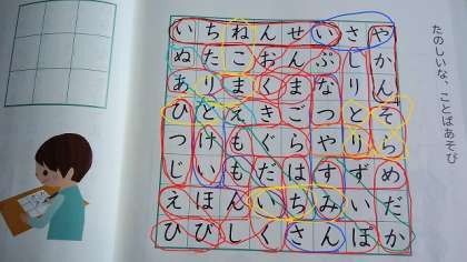 国語の時間に,たくさんのひらがなが並んでいる中から言葉を見つけました。