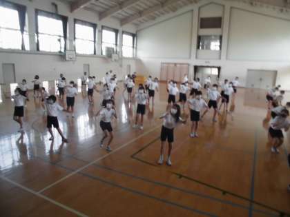 音楽に合わせてダンスをしました。みんなでそろえることを大切に頑張っていきます。