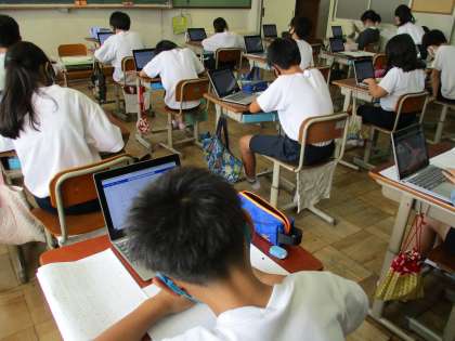 構成に気を付けて,読書感想文の続きを書きました。GIGA端末を使って文章を推敲し,原稿用紙にまとめています。